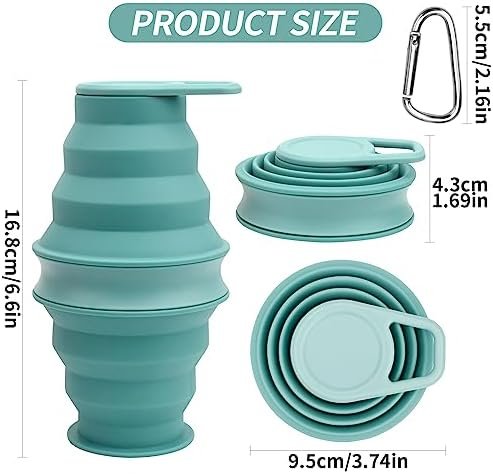 【Mini Portable】The collapsible water bottle can be folded into a small disc with a thickness of only 4.5cm. It can hold 500ml of water after unfolding. The water cup is made of light material and weighs only 109.5g. It can be easily put into your pocket, backpack or carry-on bag, lighten your travel burden and become your best companion for healthy drinking