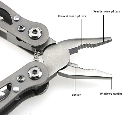 【Function】: 15 In 1 small tools :include Tool pliers(4in1),Knife,Slotted Screwdriver,Phillips Screwdriver,Double-sided File,Bottle Opener,Small Spatula,Small Pliers,Keychain,Serrated knife,Belt buckle