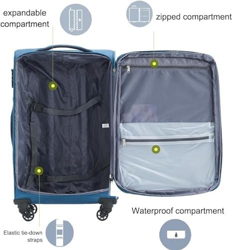 【3pcs Softside Luggage Sets】The set offers a 20-inch carry-on luggage,a 24-inch checked medium luggage, a 28-inch checked large luggage.The 24-inch and the 28-inch one are expandble, while each size features two front compartment.Capacity: 20in: 40L 24in: 70L 28in: 115L
