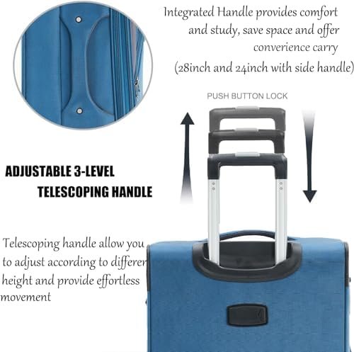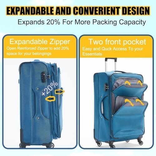 【360° Silent Spinner Wheels】: With four 360-degree rotating wheels, the Softside Luggage Sets can rotate silently and smoothly, making it easy to move. All parts roll upright, so there is no weight on the arms and travel is easy.