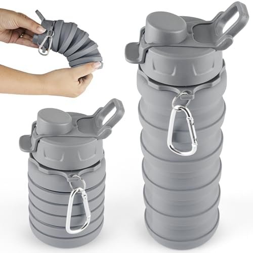 Spacesaver Collapsible Water Bottle – Foldable Water Bottle – Silicone Water Bot…
