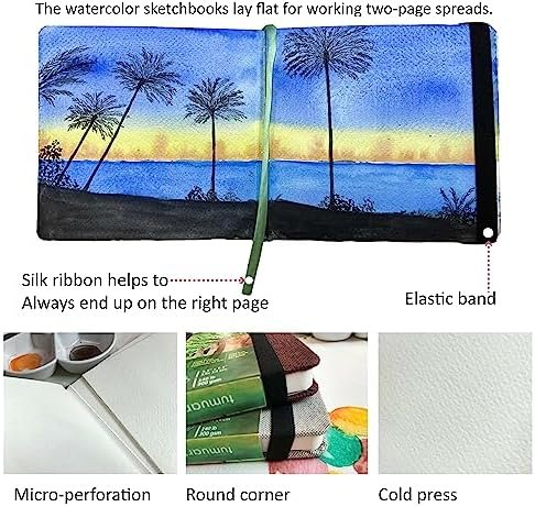 tumuarta Watercolor Journal,140LB, 300 GSM, Cotton Paper, Cold Press, 24 Sheets, Hardbound, Acid Free , Micro-Perforated, Watercolor Paper Notebooks For Use As Travel Sketchbook and Mixed Media Pad