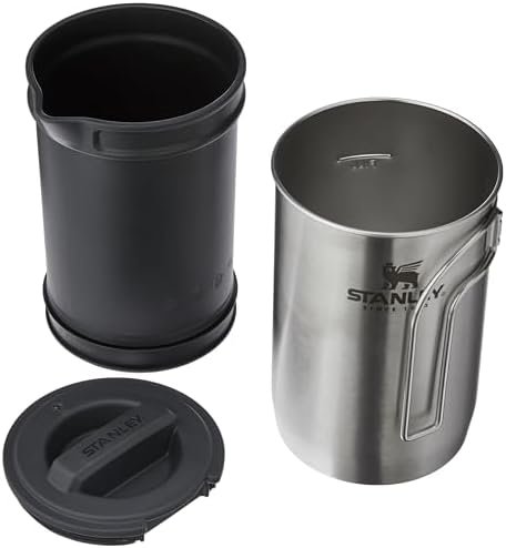 Roughing-it meets refinement with this all-in-one gear set. Whether you need a fresh cup of joe or are looking to heat up some soup to warm your bones, this sleek and streamlined French press brews, boils, and cooks. Pack light and drink up, adventurers. Roughing it at the campsite doesn’t mean compromising on your morning brew. Enjoy high quality French press coffee without giving up pack space with this multifunctional set. The 18/8 Stainless Steel pot and Vented, melt-resistant nylon lid and press brews, boils, and cooks. The nesting design and flat folding handle saves space for packing and storing, and as always with all Stanley products, this cook + brew set carries a satisfaction guaranteed built for life lifetime warranty.