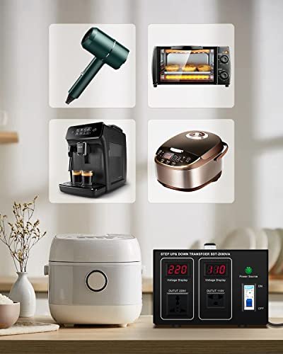 Upgraded 110 to 220 Voltage Converter:Unlike those large, bulky (stinky) converters, this newly designed 110V/220V to 220V/110V converter doesn’t produce noise/smell/heat, it’s quieter, more efficient,and equipped with voltage display can more clearly see the output voltage