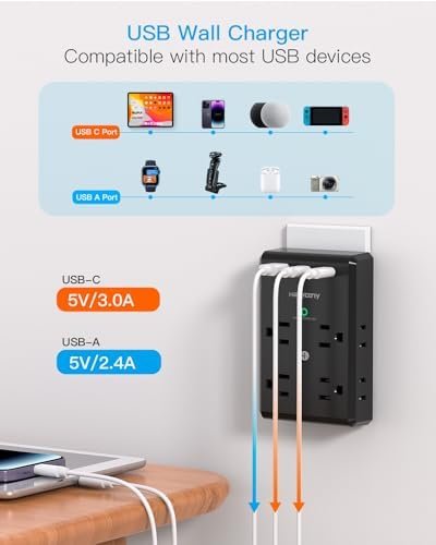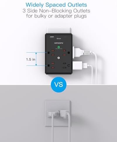 HANYCONY Wall Outlet Extender works with your existing grounded 3-prong outlets to create a charging station in your home, office, bedroom, kitchen, or anywhere you need an extra outlet plug.