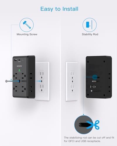 The power outlet extender with USB is easy to install with stabilizing rod behind to fit for Standard and Decor outlet tightly. For universal compatibility, the stabilizing rod can be cut off to fitting the USB receptacle and GFCI outlet.