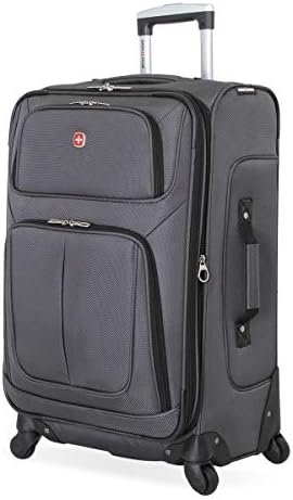 SwissGear Sion Softside Expandable Luggage, Dark Grey, Checked-Medium 25-Inch