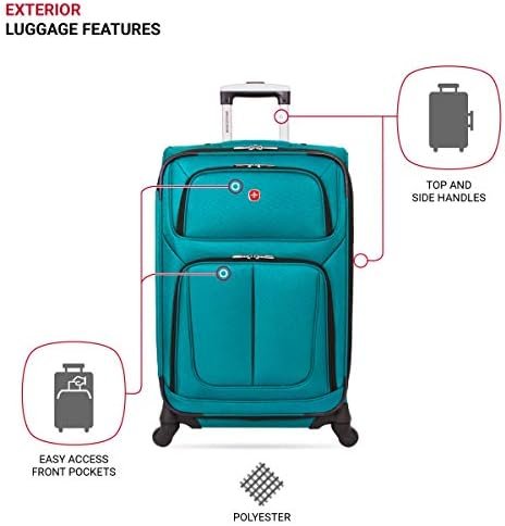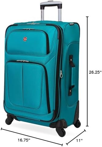 SwissGear Sion Softside Expandable Check-In Spinner Luggage gives you an ample amount of packing space when needed. This rolling suitcase features a locking push/pull handle system and four 360-degree multi-directional spinner wheels for convenient portability. It is made from a durable, scuff-resistant polyester fabric and its interior is fully lined. This check-in suitcase features adjustable luggage tie-down straps for securing garments in place, a removable zippered wet bag, a large mesh lid pocket, and a packing pocket for holding small items and accessories. It also includes two front panel pockets, a built-in ID tag, and padded top and side handles. At SwissGear, we continue to ensure whatever you need travels easily, safely, and stylishly with you. Great for a family trip or business travel.