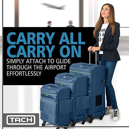 CONVENIENT TRAVEL FOR FAMILIES & INDIVIDUALS – Navigating a busy airport or station can be stressful, especially if you have kids! With TACH, getting through crowds with multiple bags is easy, as the adjustable pulling strap and 360-degree silent, smooth ball bearing wheels evenly distribute the weight within your smart suitcase. Our durable softcase glides effortlessly along without tripping or flipping over regardless of if it’s used as an individual carry on suitcase or connected as a set