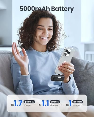 5000mAh LCD Display Charger: The portable power bank has LCD displays the battery numerically, let you know when need to recharge it before running out of battery. 5000mAh portable charger is officially MFi certified, lightweight with big capacity which allows at least fully charge once when charging without using the phone, charging starts just by plugging in, an ideal charging companion for travel and outdoor activities