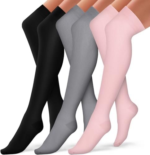 Thigh High Compression Socks for Women and Men Circulation(3 Pairs) Over the Kne…