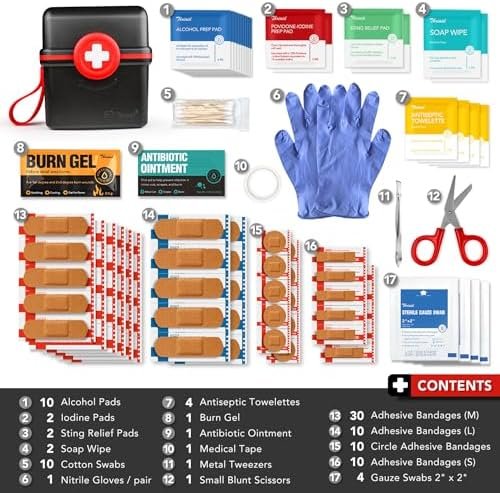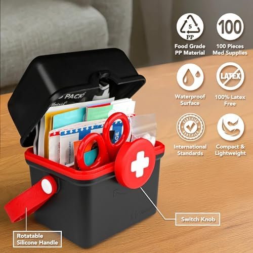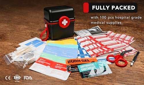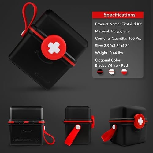 THRIAID Mini First Aid Kit, 100 Pieces Water-Resistant Small Portable Hard Plast…
