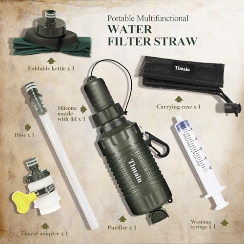 Timain Portable Personal Water Filter Straw,Water Purifier Survival Gear for Eme…
