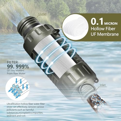 Advanced Filtration Technology:Timian personal water filter is designed with a hollow fiber membrane to effectively remove 99.9999% of E.Coli and the smallest micro plastics from surface water,at 0.1-micron filtration.You can safely enjoy your clean drinking water.