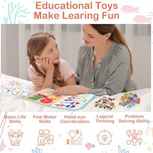 [PERFECT GIFT FOR KIDS] : Our activity board for toddlers features beautiful ocean elements on the cover and back, symbolizing freedom, beauty, and happiness. Both boys and girls will love it! This combination of children’s travel and educational toys makes it a creative and practical gift for boys and girls on birthdays, Christmas, New Years, Halloween, Easter, and Thanksgiving!