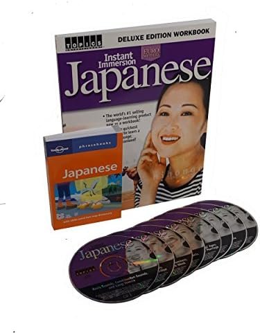 Instant Immersion Japanese Language 8 Audio CDs, Workbook and Phrasebook Instant Immersion Japanese Lab provides everything you need to start speaking and understanding Japanese right away, utilizing two intermodal language components: audio recordings and printed study guides. 8 Audio CDs CD 1: Alphabet – Sounds – Pronounciation Tips CD 2: Greetings – Introductions – Jobs CD 3: Numbers (1-100) – Telephone numbers – Age – Time/hours – Days & Months CD 4: Shopping & asking questions – Numbers (100-90,000) CD 5: Family – Addressing family members CD 6: Verbs – Forming sentences CD 7: Finding & following directions – Using the telephone CD 8: Descriptive words relating to weather – sickness – events & friends Also Includes: Instant Immersion Japanese Workbook and Japanese Phrasebook The workbook combines extensive vocabulary, phonetic pronounciation keys and exercises with full-color illustrations, cultural notes and glossary. The Japanese Phasebook is the ultimate go-to-guide, with everything from Grammer to Getting Around; Food to Festivals & Holidays.