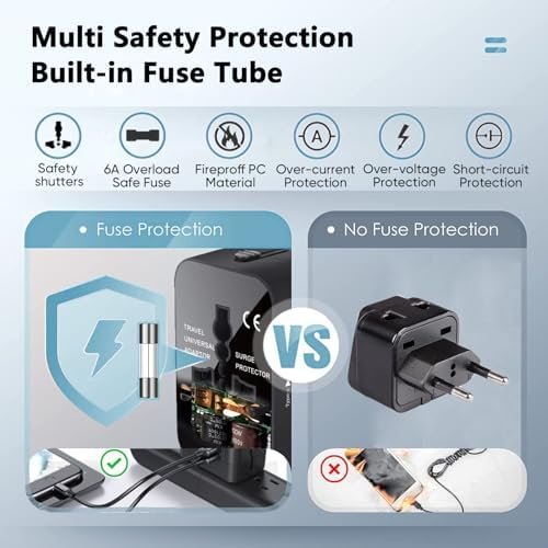 Multi Safety Protection: Adapter built-in 6.3A safe fuse protect, Safety Shutters, LED Power Indicator, Fireproof material. Provide over-current, over-voltage, Short-circuit Protection, surge protection.