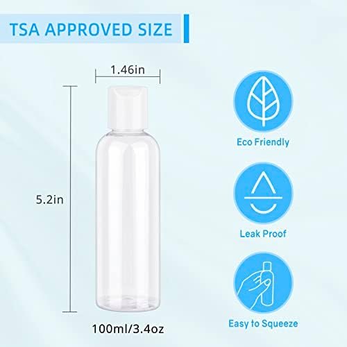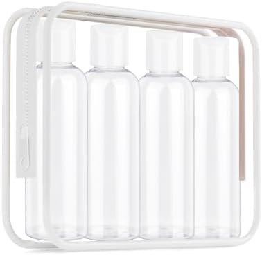 TSA Approved Clear Travel Bottles: 4 Pieces 3.4 OZ PET Clear Travel Bottles which are made of top grade meterial and leak proof with Toiletry Bag.