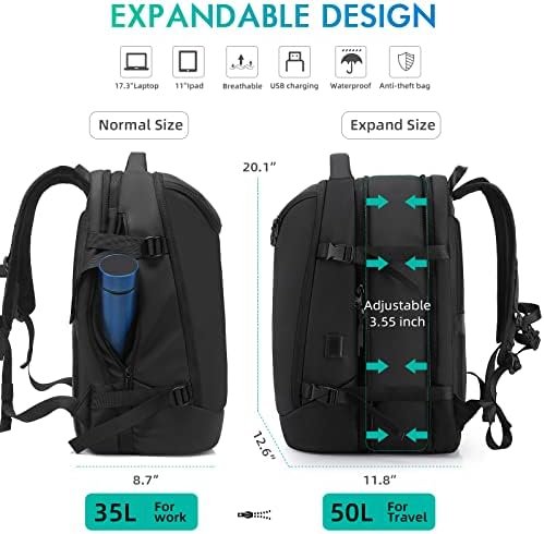 Travel Carry on Backpack 50L Expandable Flight Approved Backpacks 17.3 inch Lapt…