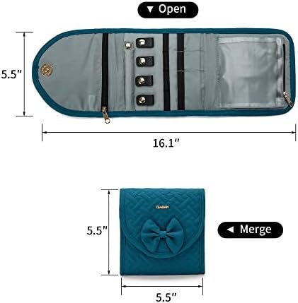 Portable Size – 5.5×5.5×0.79 inch. This necklaces travel jewelry organizer pouch is foldable, It can be easily rolling up. Enjoy your travel!