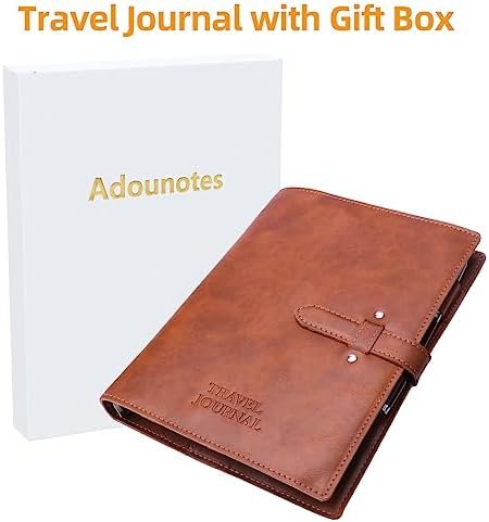 Adounotes Soft Faux Leather Travel Journal with Refillable 120Gsm Thick Paper