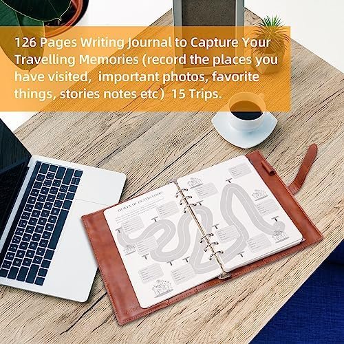 【A Travel Gift for Any Ages】This antique travel journal is a perfect gift, it can capture your memories and experiences in this book with the travel itineraries and photo album, the spiral metal can lay the paper flat for easy journaling. This journal notebook is good for men women teens, and it includes space to attach photos and notes, and an extra clear bag to store extra pics, make them a great keepsake for many years.