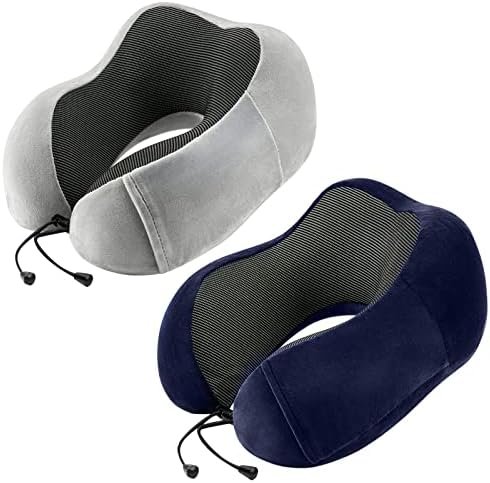 Travel Pillow for Airplane-2 Pack Memory Foam Neck Pillows, Soft & Support Trave…