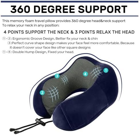 Perfect Support with Ergonomic Design: urnexttour airplane neck pillow has unique curves and shape design that can naturally fit your neck and back; it offers 360°support helps you keep your neck and head upright to alleviate pressure and without getting any soreness during travel. The durable rope lock could be used to adjust the angle and the size of the pillow to meet different neck size requirements. It will be your best sleep partner for travel.