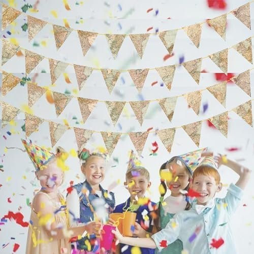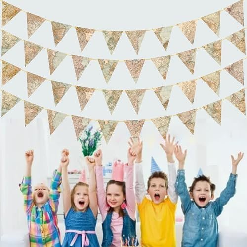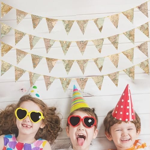 Travel Themed Party Decorations 4pcs Vintage Bon Voyage Map Pennant Banners Goin…