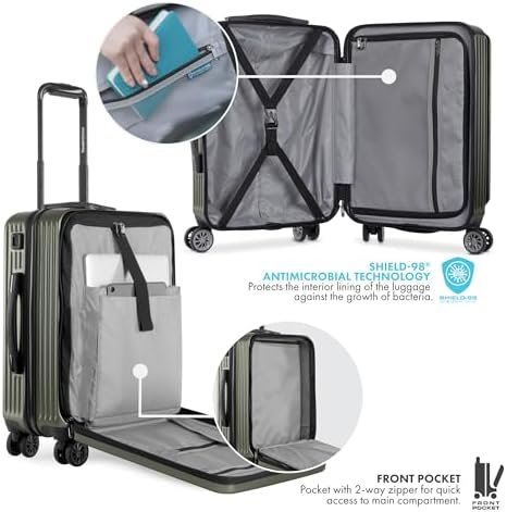 Fully Lined Interior with Shield-98 Technology: Stay organized with a spacious, fully lined interior equipped with tie-down straps. Shield-98 ensures your luggage stays fresh and clean.