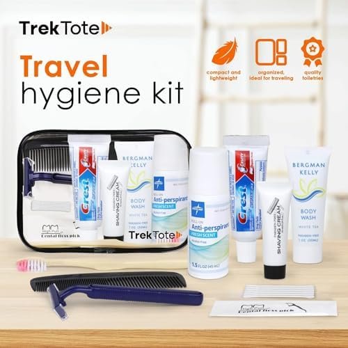 *Top-notch toiletries from trusted brands: Our kit includes products from well-known and respected brands like Bergman Kelly, Crest, and Travelwell, ensuring you have the best quality toiletries for your trip.