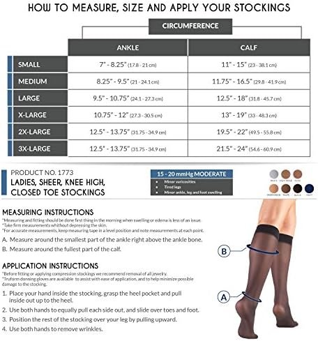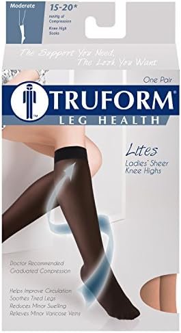 Truform Sheer Compression Stockings, 15-20 mmHg, Women’s Knee High Length, 20 De…