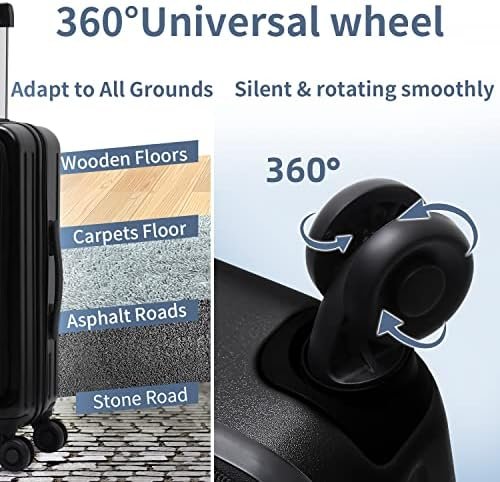 Silent Wheels & Smooth Handle: With soft TPU and lubricating balls inside wheels, luggage adapt to various ground and moves very silent and smoothly in 360°. Push-button locking handles provides easy maneuverability when extended from the suitcas, and stores neatly inside when not in use. The adjustable handle can help you change to your suitable length