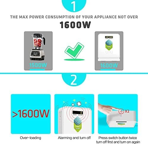 NOTICE: 1600W rated, please DO NOT overloaded, it will be alarming or even turn off automatically!