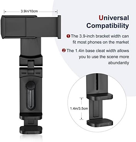 【Wide Compatibility】The top phone clip of this travel phone holder has a maximum width of 3.9inch, which is compatible with most phones on the market. The maximum width of the base clamp is 1.4inch, which is compatible with most of the scenarios