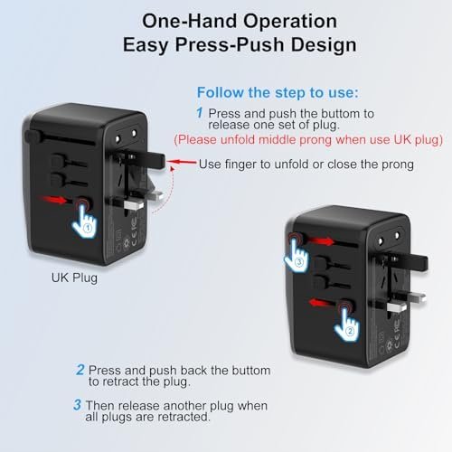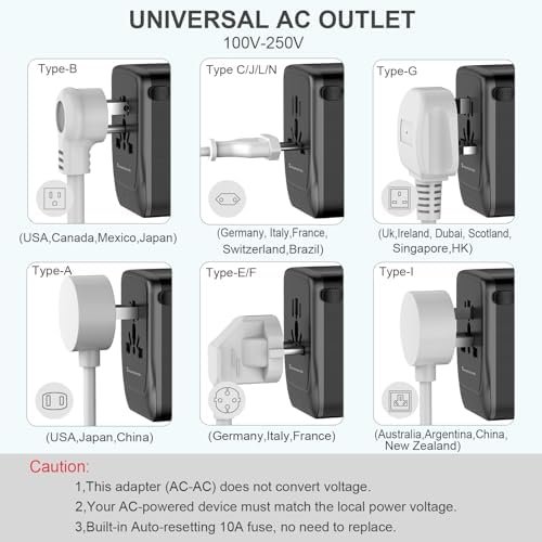 International Travel Plug Adapter: Covers over 200 countries: France, Germany, Italy, Spain, Iceland, Greece, Israel (Type C ); UK, Ireland, London, England, Scotland, Dubai (Type G); China, Australia, New Zealand (Type I); USA, Japan, Canada (Type A), More countries please check Description or Picture Part.