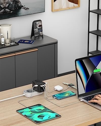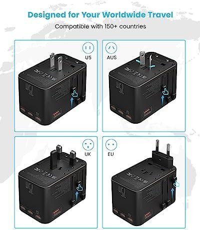 Safety and Quality Assurance: Advanced GaN technology makes worldwide international adapter charging faster, cooler and more efficient. Lower charging temperature for longer service life. 10A overload fuse makes it possible to cut off the current in case of overcurrent charging.Fire resistant material makes this adapter non flammable. With safety shutters and plug lock system, supporting short circuit, over voltage and over current protection