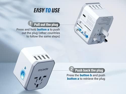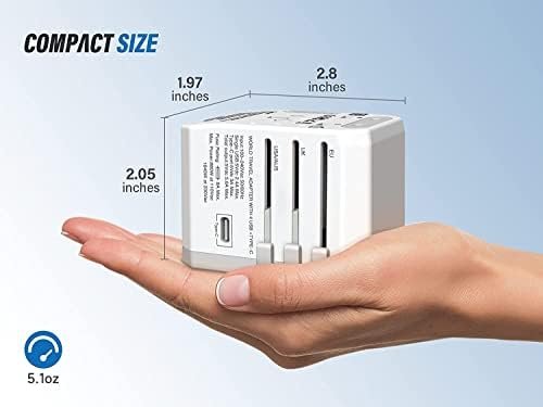 SAFETY CERTIFIED – This travel adapter is equipped with built-in 8A fuse, safety shutters and plug lock system. In addition, it is certified by RoHS, CE, and FCC, ensuring its safety and reliability.