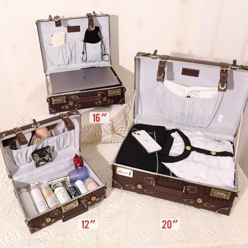 urecity Vintage and Cute Carry-on Overnight Case Non-wheeled Mini Leather Trunk …