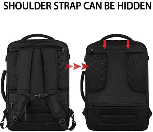 Convenient Design: This carry on travel backpack is designed with hideaway padded shoulder straps which can be hidden away in the zippered back panel when not using. Two padded handles on the topmost and the side are designed to lift the backpack from multiple angles, provide you more flexible carrying experience such as carrying like a suitcase or a backpack. A luggage strap on the back is designed to fit on the luggage’s handle, for easier carry on international travel