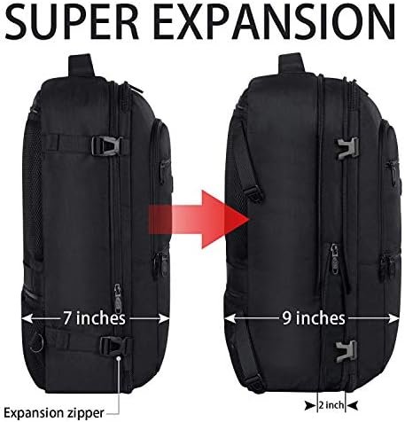 Expandable & Large Capacity: This large travel backpack with an expandable design gives you a greater capacity of up to 40 L. Unzipping to get larger storage space, increasing the width by up to 2 inches. You can easily fit 3-7 days travel gears. It is an good choice for weekend getaways and business trips. The TSA 180 degree zipper closure helps you go through the security check quickly