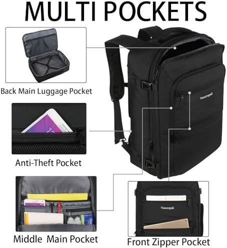Vancropak Carry On Backpack, 40L Expandable Extra Large Travel Backpack, Flight …
