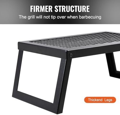 Sturdy & Stable: Unlike other thin legs, our over fire camp grill is durable and stable with thickened legs. It can accommodate multiple pots and pans, ensuring firmness while cooking and grilling.