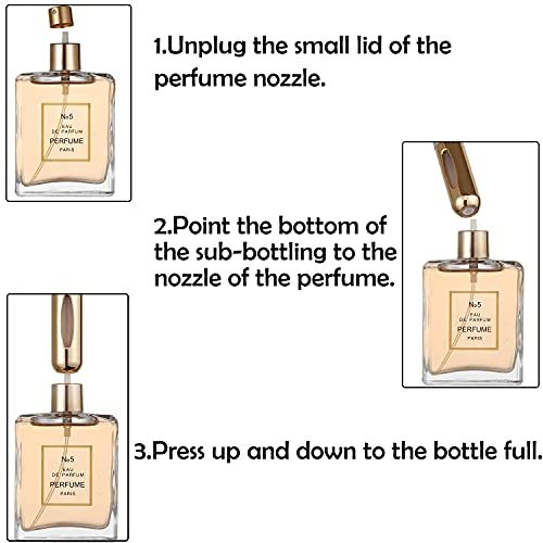 Easy to carry: This Perfume Atomizer Bottle is handy travel size. Easy to use and easy to fill/refill, Just press the bottom against your favorite perfume gauge and keep clicking until it is refilled.