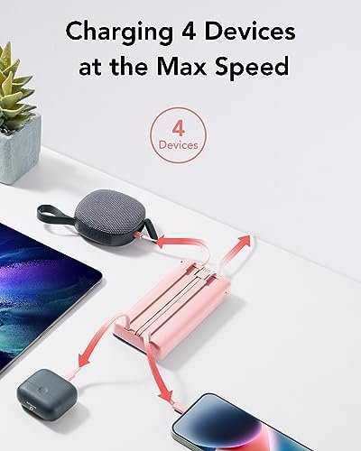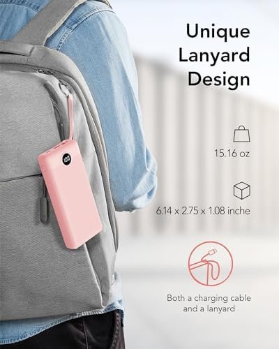 Mean Features 20000mAh/ 22.5W/Built-in 4 Cables/Lanyard Design/Airlane Use Friendly Capacity 20000mAh/77Wh Szie 6.14 x 2.75 x 1.37 inches Weight 15.2 Ounces/430g Outputs for iPhone Output(20W), Type C Output Cable(18W),Micro Output Cable(12W), USB Output Port(22.5W) Inputs USB C Input Port(18W),Built in USB-A Cable Input(10W)