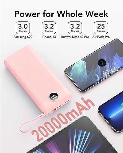 VRURC Portable Charger, 20000mAh Power Bank Fast Charging, Built-in Micro & USB …