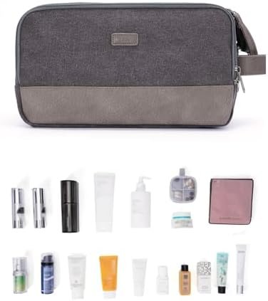 WANDF Toiletry Bag for Men Travel Toiletry Organizer Canvas and Leather Dopp Kit…