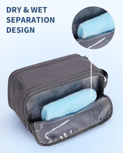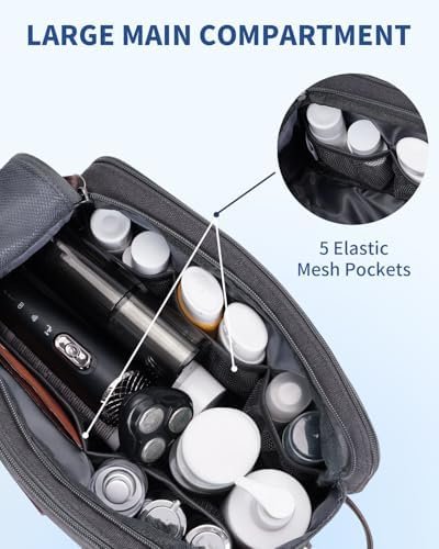 【Large Capacity Main Compartment】: The WANDF toiletry bag measures 9.8 x 5.1 x 6.3 inches and features five internal mesh pockets for upright storage of toiletry bottles, with two elastic loops on the zippered lid. The spacious main compartment easily accommodates all your travel essentials and toiletries. (Patent Pending)