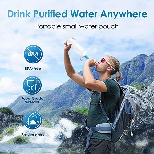 Recyclable Straw: With innovative backwash purifier function, the inside of the Water Filter Straw can be kept clean at all times and it is recyclable, safe and pollution-free. If the water flow decreases or the filter has been used for a long time, you can remove the mouthpiece, flush it with clean water. (Standard water bag can be used or pop bottle with thread diameter of 27.5mm can be filled clean water for backwashing the filter straw.)