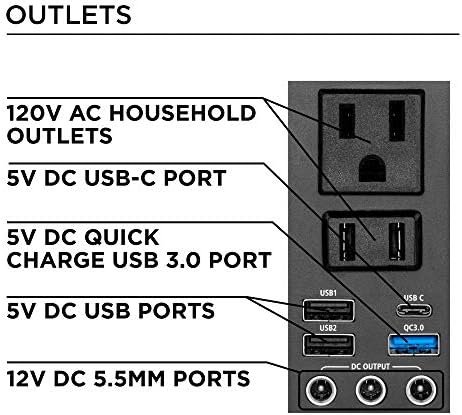 The iGen160s comes equipped with two USB outlets, one USB-C outlet, one USB QualComm Quick Charge 3.0 outlet, two 120V household outlets, and three 5.5mm DC outputs